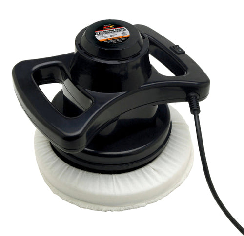 Random orbital action reduces risk of paint burn through and swirl free finish Large comfortable double handle for optimum control with less fatigue Polish cars, boats, granite counter tops and more Motor: 120V 60hz, 0.92 AMP, 3000 RPM and no load speed, 17 in. 2-pronged power cord Includes 1 foam backing pad, 1 terry cloth bonnet and 1 synthetic wool bonnet Replacement bonnets - W50056 cUL listed E242023